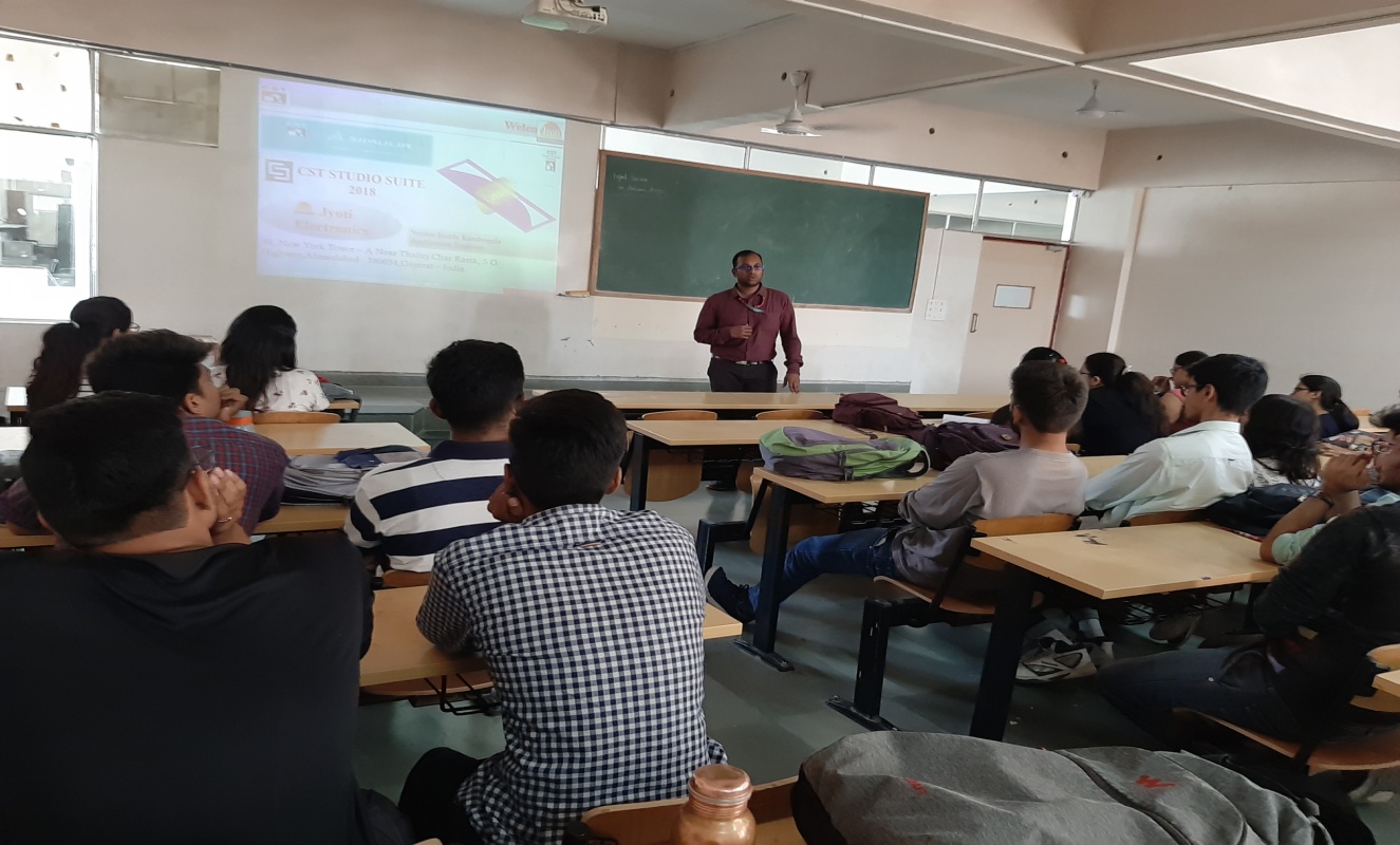 Electronics & Communication department invited an expert Mr. Venkat Reddy, Application Engineer from Jyoti Electronics, Ahmedabad to carry out “demonstration of CST software for Antenna Design” on Date: 22/04/2019 (Monday) in LH-22, Bhanwar Building from 10:00 AM to 12:00 PM for 6th semester EC students.