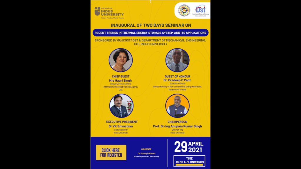Seminar On Recent Trends in Thermal Energy Storage System and its Applications 29 – 30 April 2021 Previous Next The Two days seminar Program on