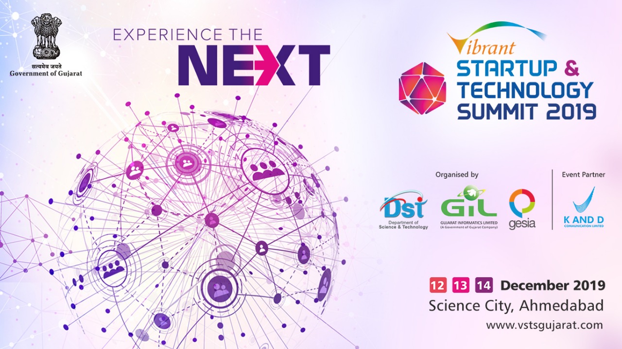 It is our pleasure to inform you that as a part of Vibrant Gujarat Summit 2019, Government of Gujarat, ‘Startup & Technology Summit 2019’ has been organized at Science City, Ahmedabad during 12-14th December 2019 by Department of Science & Technology (DST), Govt. of Gujarat; Gujarat Informatics Limited (GIL), Govt. of Gujarat and Gujarat Electronics & Software Industries Association (GESIA) IT Association along with K AND D Communication Limited as an Event Partner (https://vstsgujarat.com/).