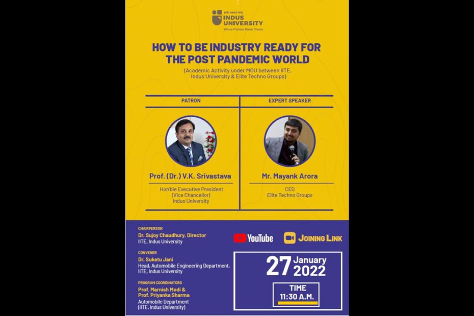 Expert Speaker Mr. Mayank Arora, CEO, Elite Techno Groups. An academic activity under MOU between IITE, Indus University & Elite Techno Groups in which 56 students participated. It was coordinated by Assistant Prof. Marnish Modi