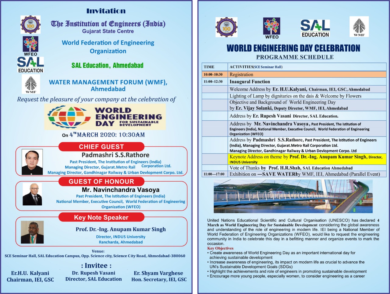 World Engineering Day Celebration March 04, 2020 at SCE Seminar Hall, SAL Campus, Science City Road, Ahmedabad Facebook-f Twitter Linkedin-in Instagram Tags:Indus UniversityMarch 2020 previousWorkshop on Data Science in IndustrynextDr. Chetana Deoghare