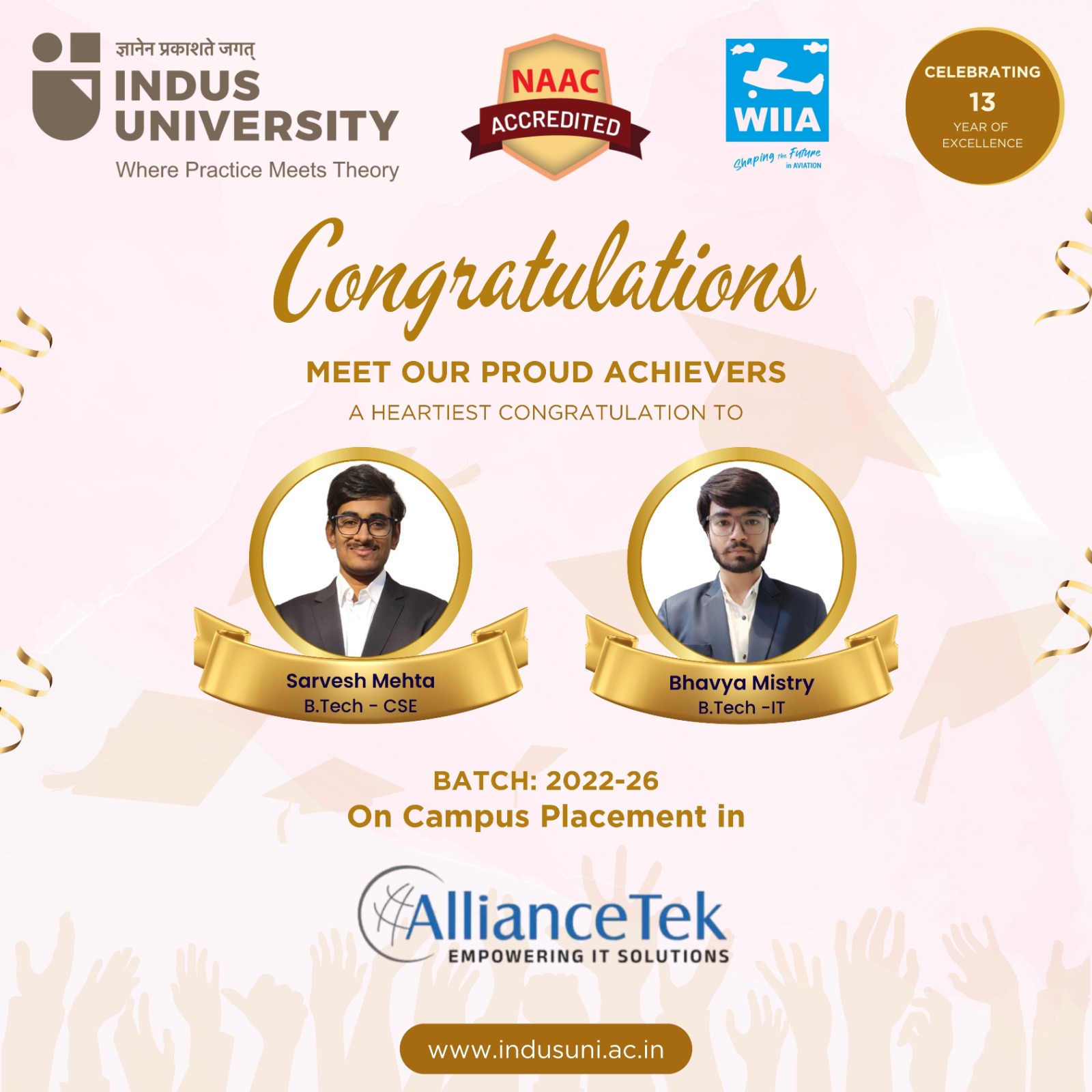 Congratulations to Priyanka Pandey and Mansi Paliwal on getting placed at D-Mart! Proud moment for Indus University as our students step into the corporate world with confidence and competence.