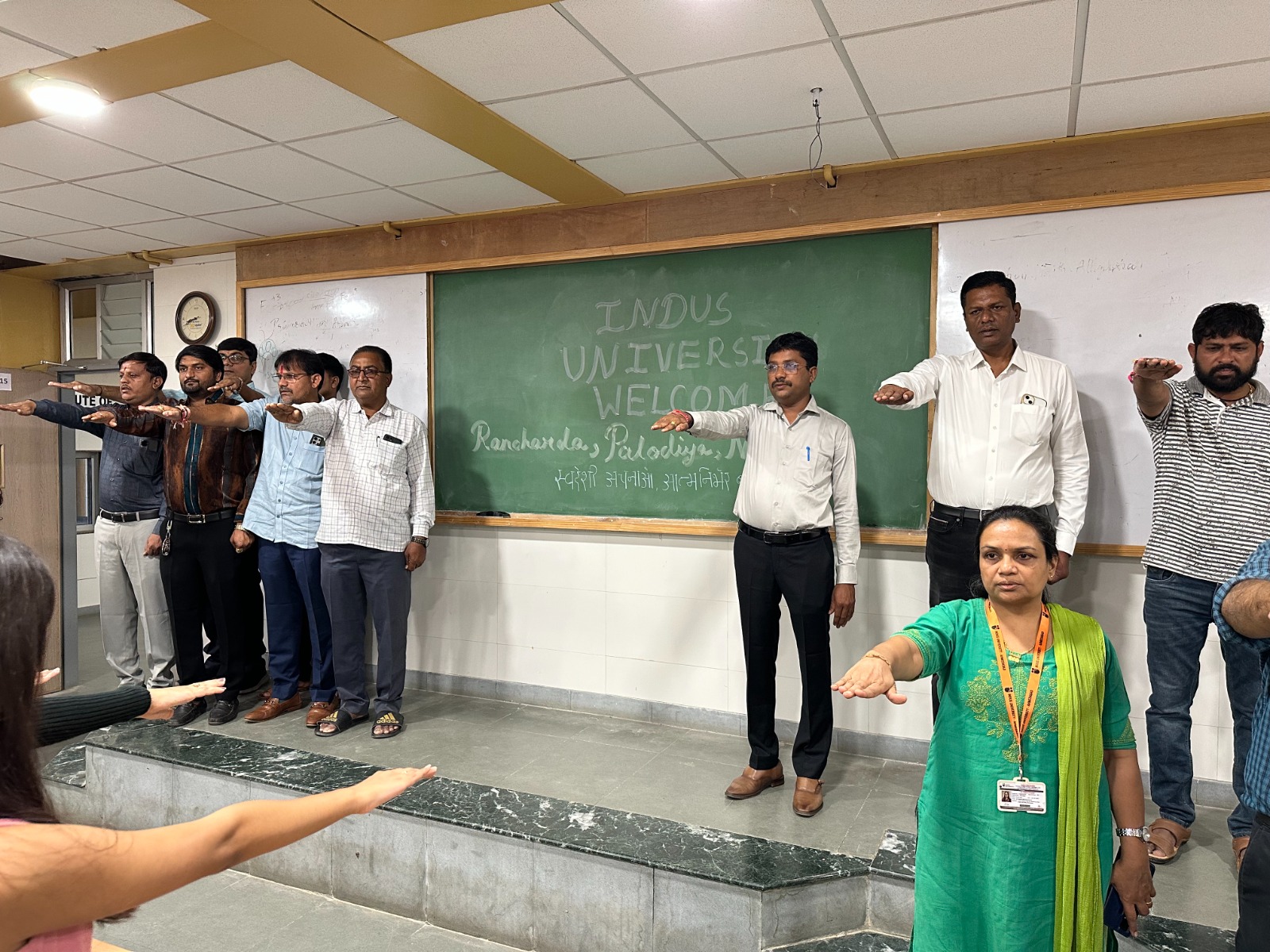 Indus University commemorated 150 years of Vande Mataram by organizing a special event on 7th November 2025, as per UGC directives. The celebration highlighted the song’s enduring legacy as a symbol of India’s unity, strength, and national pride. The students, university management, and members from the villages of Rancharda, Nandoli, and Palodia—including Sarpanch and Talati-cum-Mantri participated with great enthusiasm.Students also took an oath to adopt Swadeshi and contribute to the nation’s progress through self-reliance and patriotism. The campus echoed with the powerful chorus of “Vande Mataram,” creating an atmosphere of unity and national spirit.
