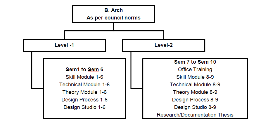 The duration of the B.Arch programme is 5 years, including internship or practical training.